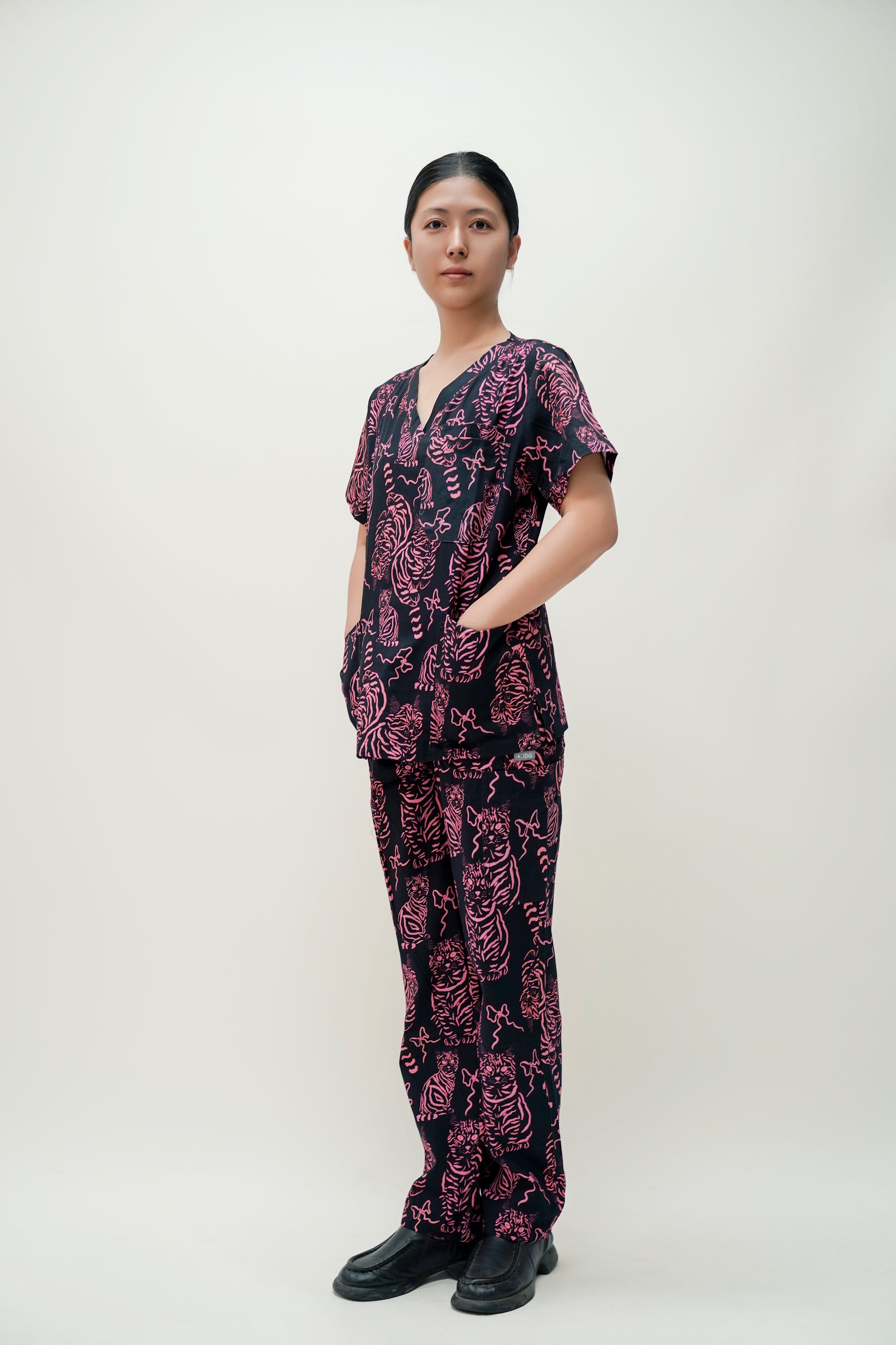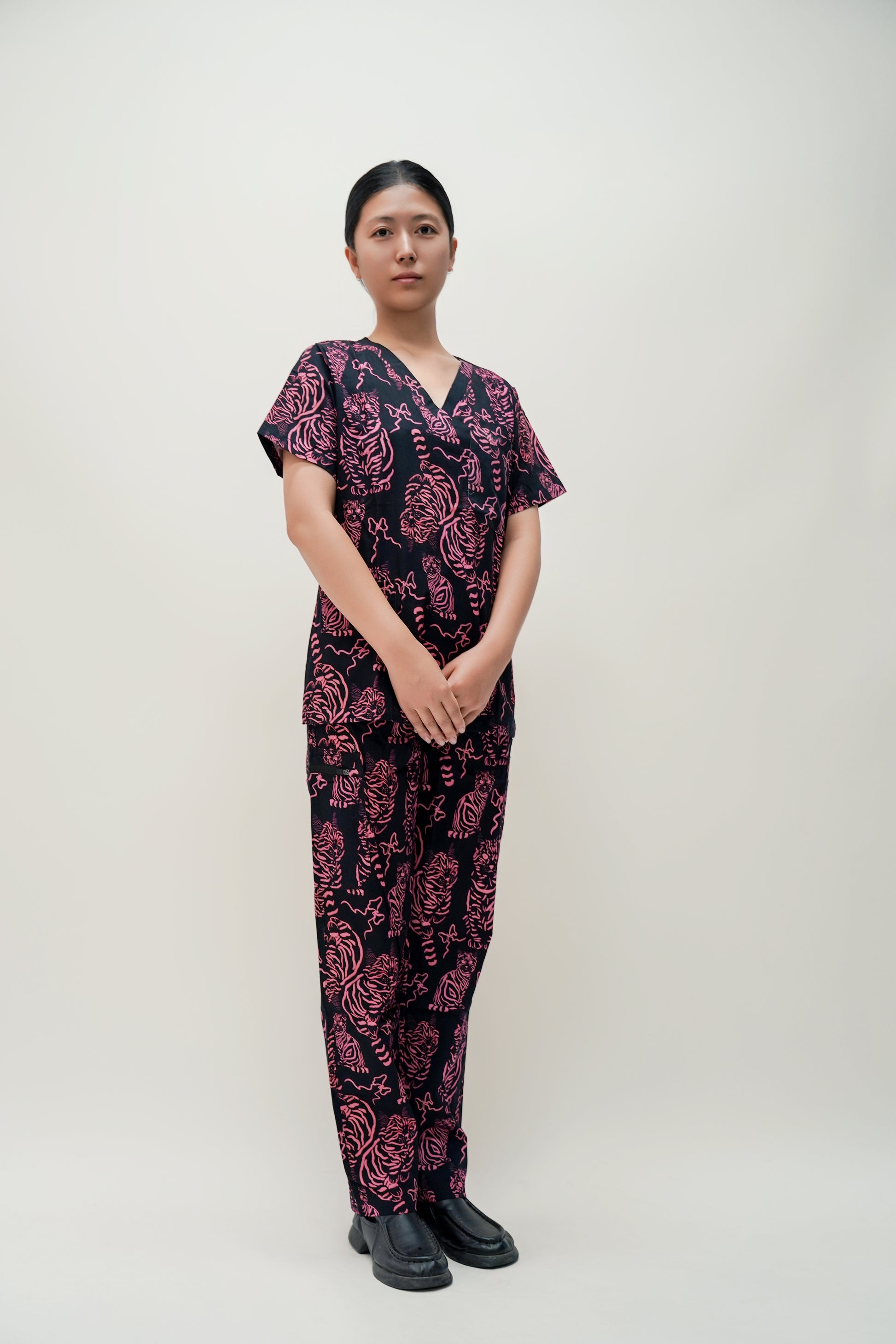 Make a bold statement with our Black & Red Cotton Scrub with Cat Print! Designed for cat lovers and professionals, this scrub offers the perfect mix of style, comfort, and functionality.
