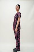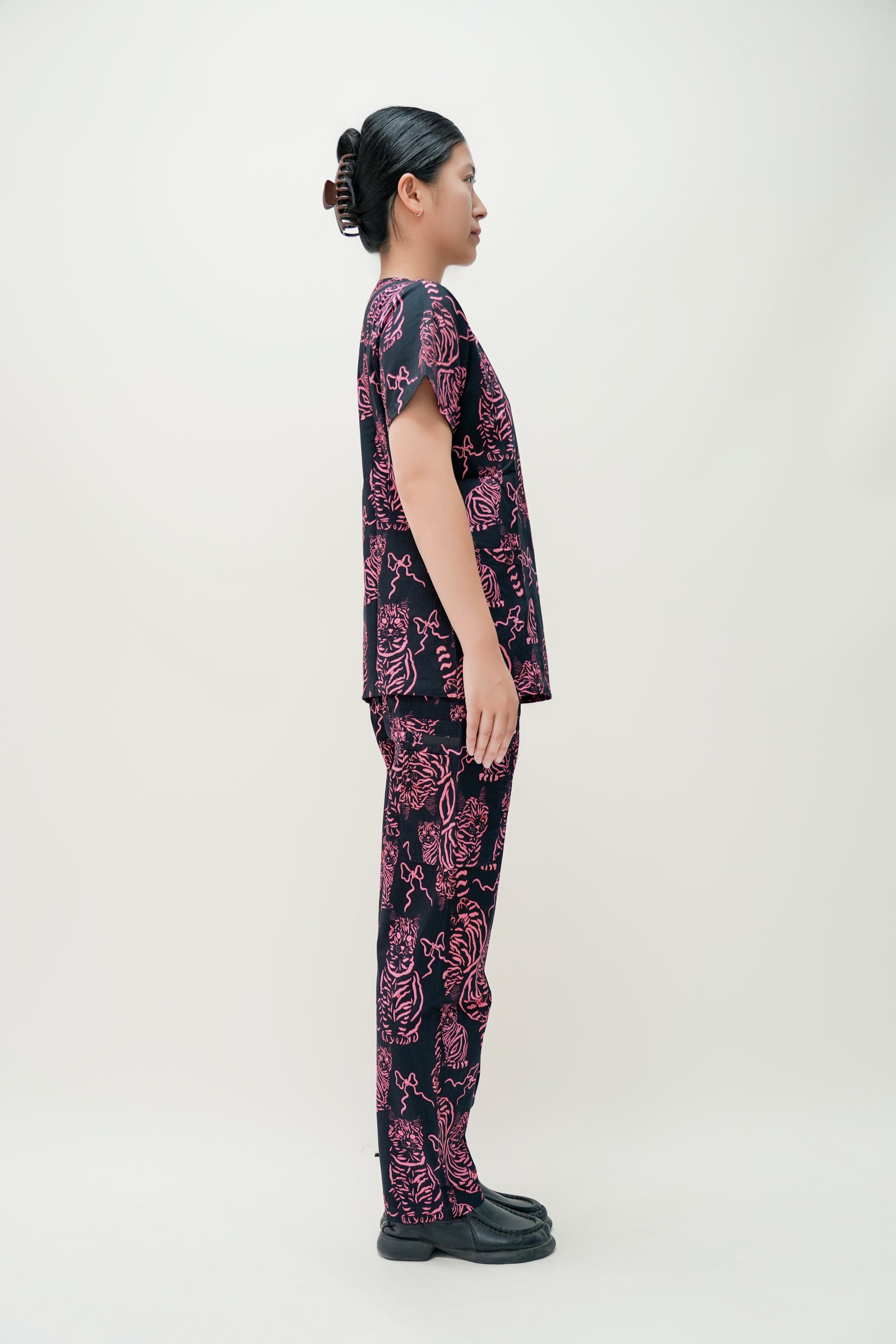 Product Description: Black & Red Cotton Scrub with Cat Print