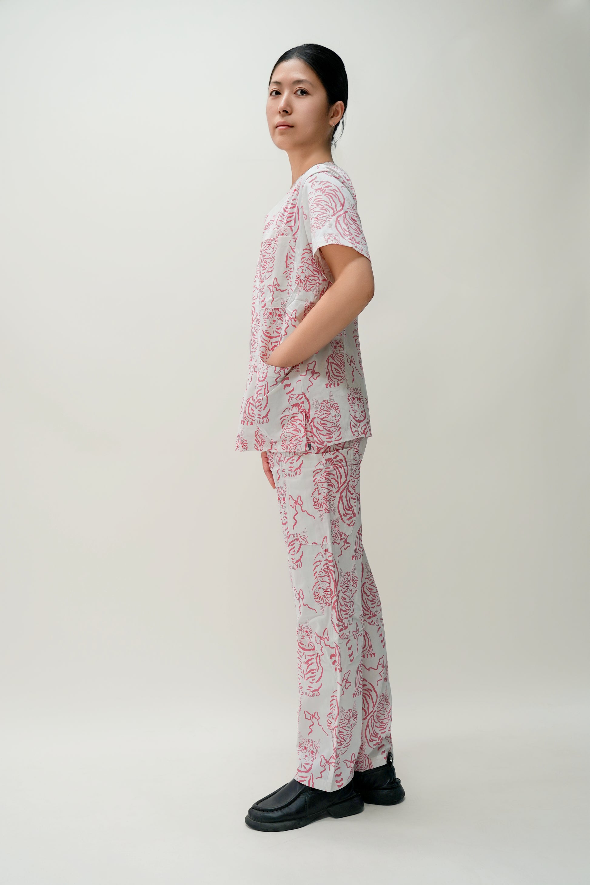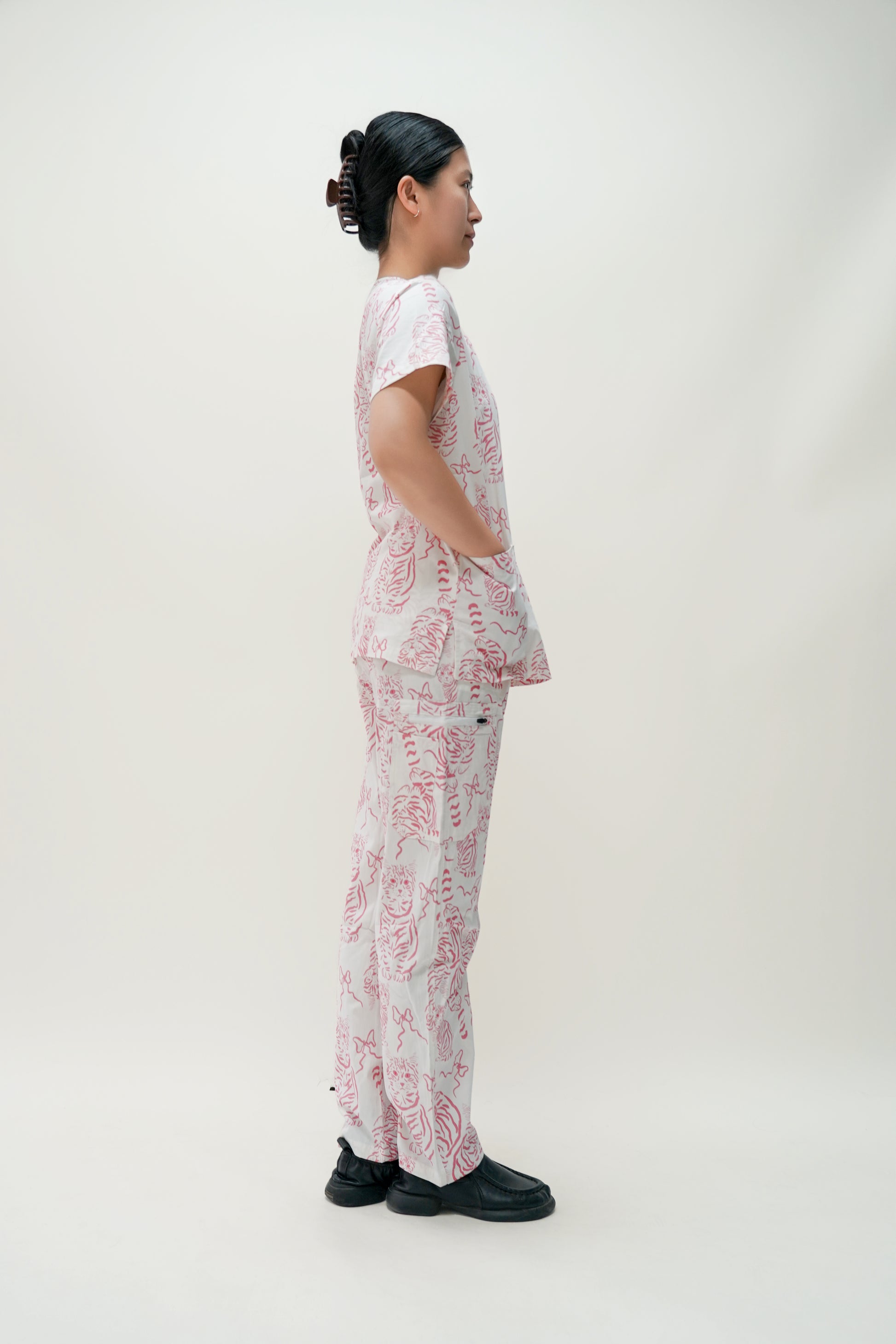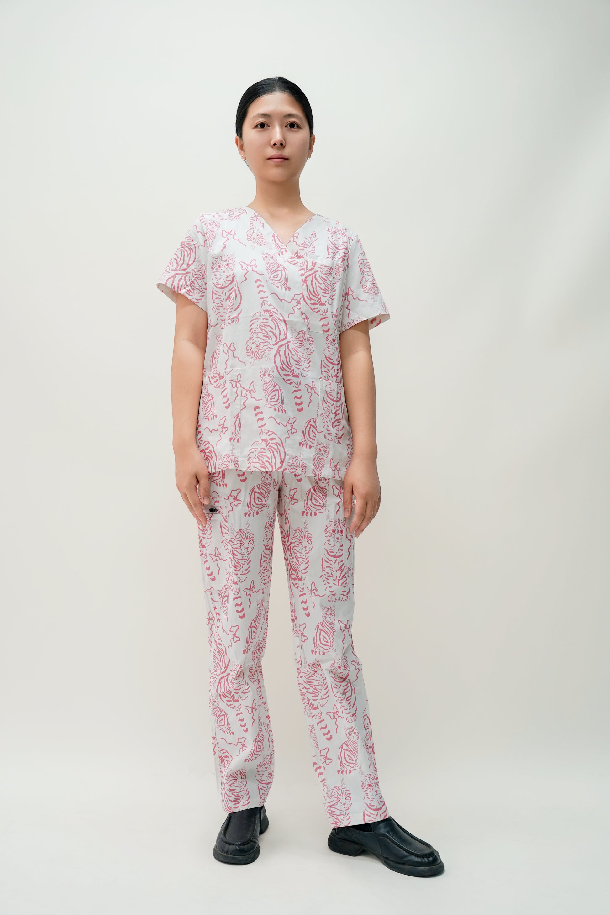 Bring comfort and cuteness to your workday with our Pink & White Cotton Scrub with Cat Print! Designed for cat lovers and professionals, this scrub combines style, breathability, and softness for all-day wear.