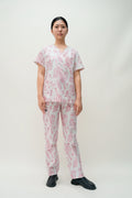 Pink & White Cotton Scrub with Cat Print